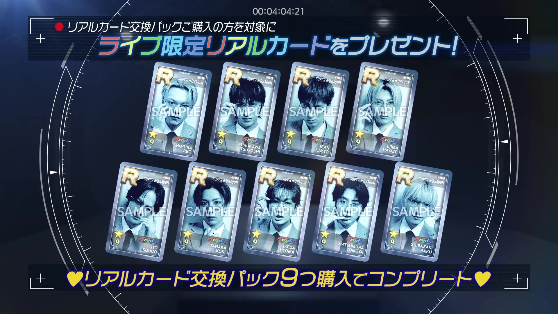 コンプリート特典:「リアルカード交換パック」を9つご購入で、メンバー全員分が揃う「コンプリートセット」と交換可能です。