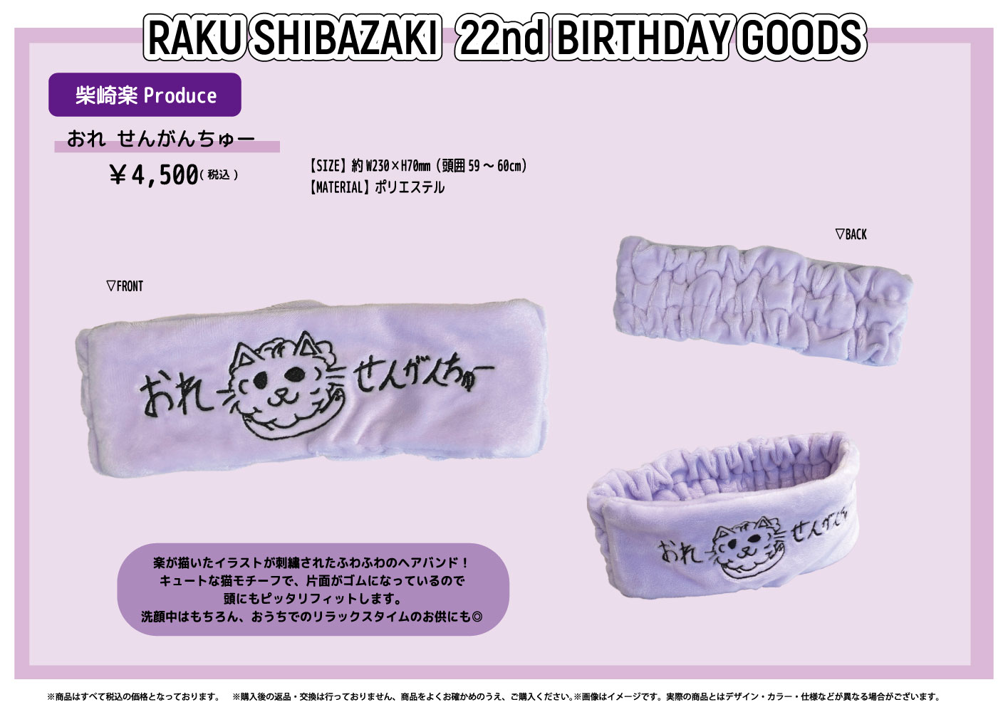 今年のプロデュースグッズは、手書きイラストが刺繍されたヘアバンド!是非ゲットしてくださいね☆