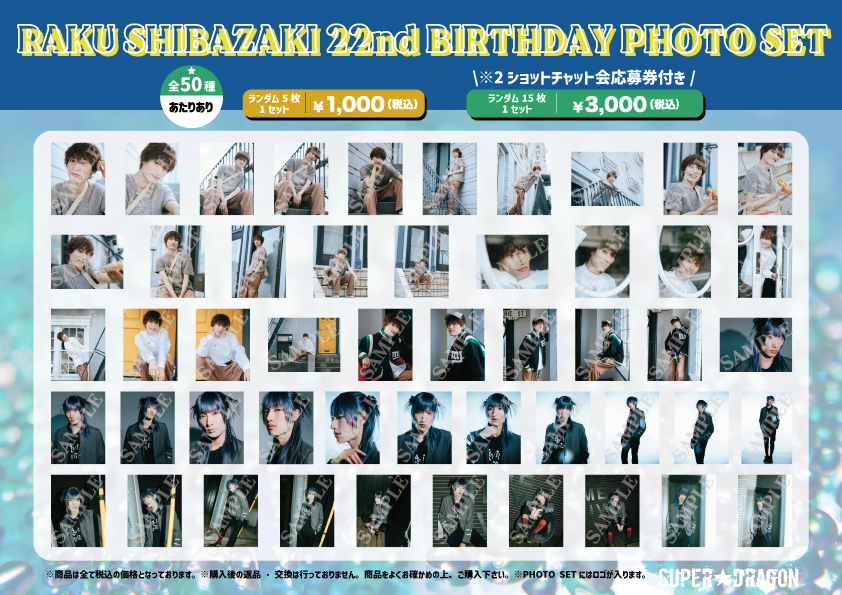 NEW!!●〈2ショットチャット会応募券付き〉RAKU SHIBAZAKI 22nd BIRTHDAY PHOTO SET ¥3,000(税込)