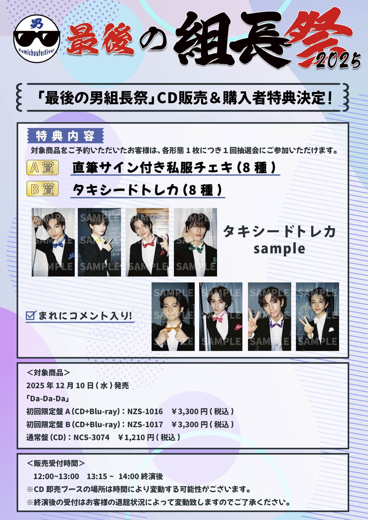 2025年11月9日(日)に開催される「最後の男組長祭」でのCD販売と購入者特典が決定いたしました!下記詳細をご確認のうえご購入ください。