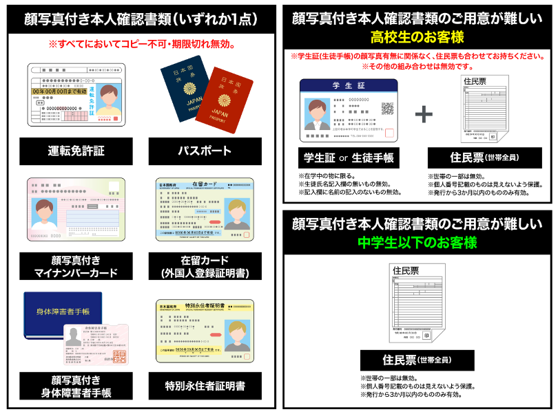 ※ Semua dokumen yang telah dimodifikasi, seperti salinan, tulisan tangan, kadaluarsa, atau tidak dapat digunakan, tidak dianggap sebagai "identifikasi resmi". Harap pastikan untuk membawa dokumen aslinya.