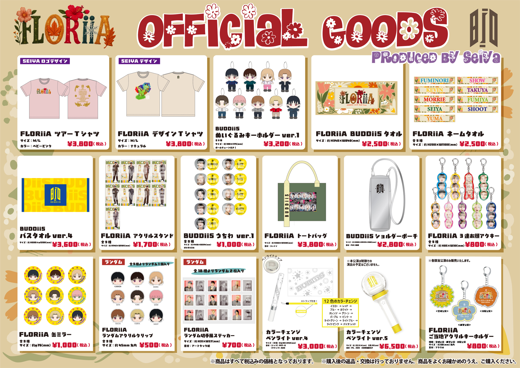 「BUDDiiS vol.11 Hall Tour - FLORiiA -」【宮城・滋賀・大阪】公演 オフィシャルグッズ&生写真セット会場販売のお知らせ!