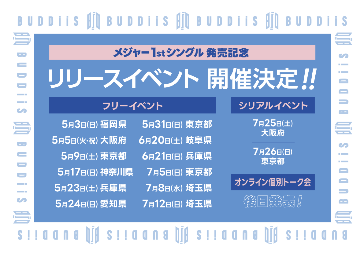 BUDDiiS メジャー1stシングル リリースイベント開催決定!