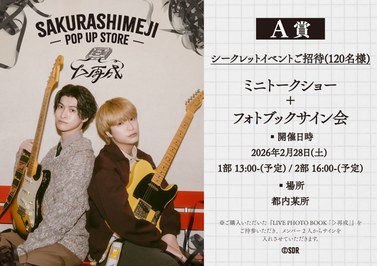 ※サイン会では、POP UP STOREにてお客様にご購入いただいた【LIVE PHOTO BOOK 「▷再成」】にSakurashimeji メンバー2名からサインを入れさせていただきます。